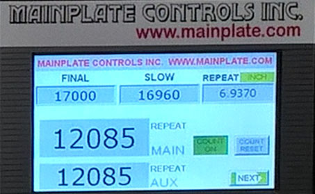 Controls all functions, Automatic Unwind Tension control, Run, Jog, Slowdown speeds, counting 10", 12", Repeat length, Metric count + Label count.